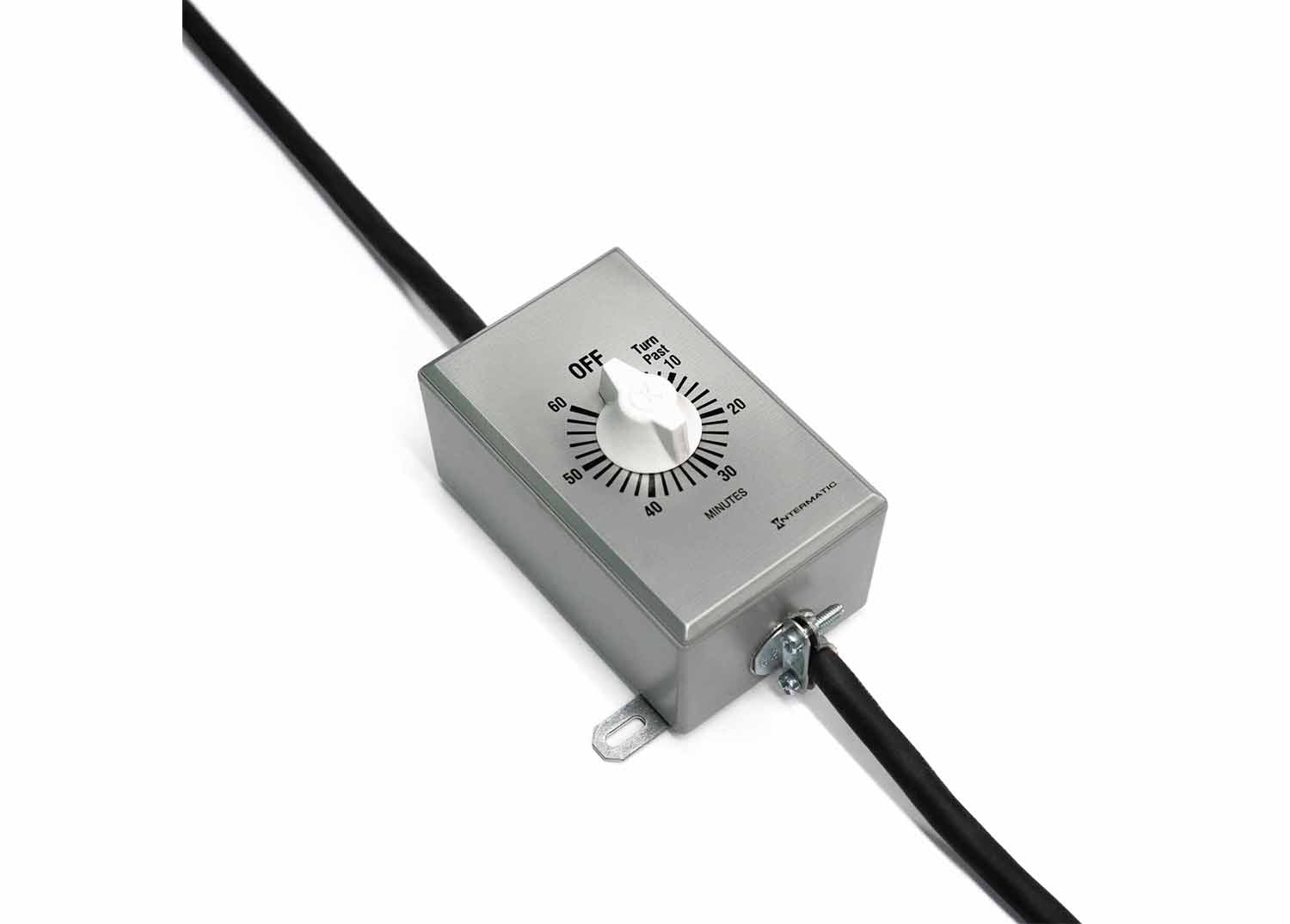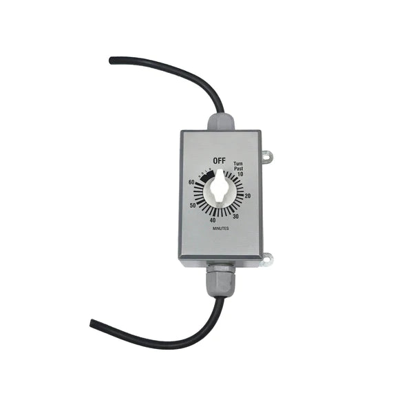 The Outdoor Plus OPT-DTM Outdoor Rated Electrical Dial Timer for 110V Systems provides a high-quality accessory for your fire pit. The mechanical timer can be wired to 110VAC in order to offer a convenient shutoff for electronic ignition fire pit systems. The controller is mounted to an outdoor-rated electrical box and should be mounted on the 110VAC side of the transformer. This dial timer has a 2-hour max time limit.