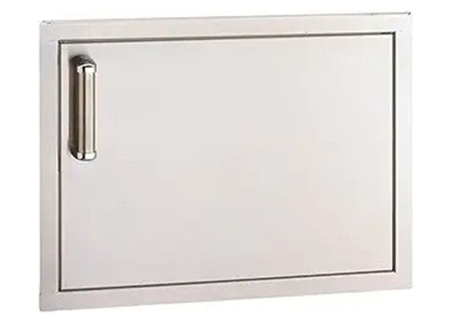 Fire Magic Premium Flush 20-Inch Right-Hinged Single Access Door - Horizontal With Soft Close - 53914SC-R. 53914SC-R. BBQ & Outdoor Kitchen Access Doors. Complete your Fire Magic outdoor kitchen with their complete line of doors and drawers. The Fire Magic Premium Flush Mount Horizontal Single Access Door - Right Hinge features sealed, double walled, and foam insulated construction for a solid feel. It comes with stainless steel mounts and a magnetic latch for secure closure. Door hinges are equipped with a soft close feature that not only prevents slamming, but ensures a full and secure close every time. Fire Magic Premium doors and drawers use 304 stainless steel for lasting durability and are designed to match the Fire Magic Echelon and Aurora series grills.
