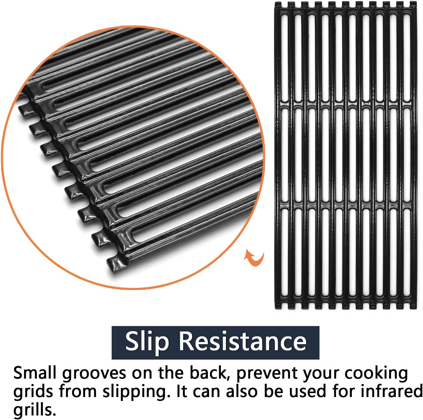 - 【Heat evenly & Cook better】Porcelain cast iron grates not only heat evenly and retain heat superbly, but also deliver prominent sear marks and create delicious flavor. Please note that this grill grid is no need to season.