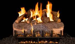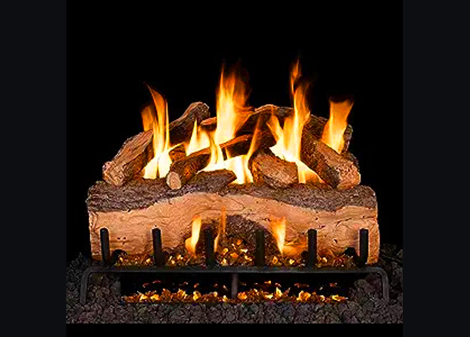 Peterson Real Fyre 18-Inch Mountain Crest Split Oak Gas Log Set With Vented Propane ANSI Certified G31 Triple-Tier Burner - Variable Flame Remote.. MCS-18 + G31-18/20-17P. Vented Gas Fireplace Logs. Peterson Real Fyre Charred Series Gas Logs reflect the glowing depth and fiery heart of a long burning fire. Real Fyre artisans work from actual wood samples to carefully recreate the intricate bark detail and natural coloration of deeply charred wood. Gas fireplace logs are convenient and easy to use for most gas fireplaces. The beautiful display and flame presentation of this Real Fyre Charred Wood gas log set is ideal for creating those magic moments and memories. This Peterson Real Fyre gas log set includes: Ceramic Refractory Vented Gas Logs, Vented Glowing Ember Burner, Custom Grate, Connector Kit, Glowing Embers, Sand, Burner Clips, and Damper Clamp. The Peterson Real Fyre vented G31 Triple tier burner produces more depth and rich, full flames in front of the gas logs for more realism. This set features an automatic variable valve with a remote