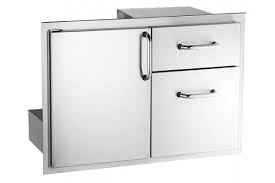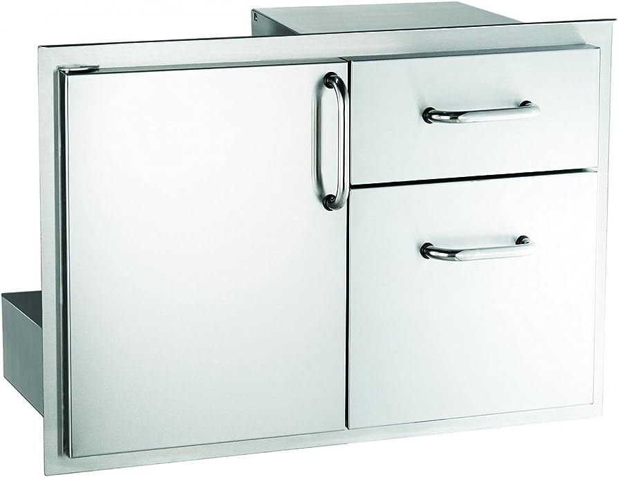 The Fire Magic 53810SC offer a high-end access door option, a must have for your ultimate outdoor kitchen. This product is manufactured from 304 stainless steel and features a double-walled, foam insulated construction for added durability and longevity. This unit comes with stainless steel mounts and a magnetic latch for a secure closure. The unique combination of the single access door and dual drawers offers plenty of storage space for all your outdoor cooking needs. Be sure to complete the outdoor kitchen of your dreams with everything that you need, including the Premium Access Door and Double Drawers from Fire Magic. (53810SC)