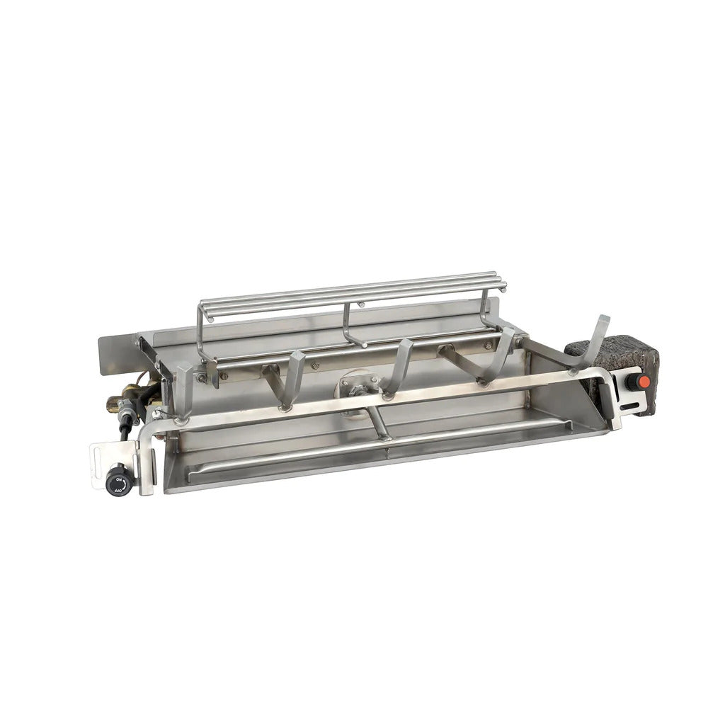 This stainless steel burner system Features an Exclusive stainless steel “booster grid” that acts as a catalyst to increase the intensity of the fire. It offers multiple control options including remote, manual and match lit. Compatible with Charred Evergreen Oak & Charred Evergreen Split Oak logs only. Available for Natural or LP gas.