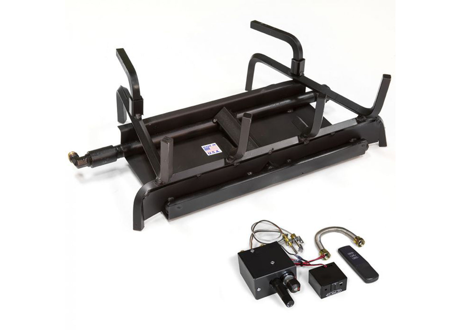 Grand Canyon Assembled 24" 2 Burner With Millivolt/1001 Series Remote - NG. Assembled burner systems feature factory tested and installed control systems. Tested to the ANSI standard, these assembled system area plug and play approach. Indoor use ONLY, Stainless Steel pan construction with metal bar stock and burner pipes.. Features : Style: Main rear burner with Dual action front ember burner. Standards: ANSI Certified with Control Systems. Usage: Indoor. Materials: Stainless Steel Chassis. Design: Fully Welded System with Sandless Design. Fittings: Gas Inlet Left or Right. Convertible to LP: NG Burner convertible to LP. Piping: 1/2" Piping And 1/2" Bar Stock. Pilot: Concealed Pilot Mounting Brackets. Media: Includes Lava Rock, Embers, And Connection Fittings. Warranty: Lifetime Warranty - When Installed Indoors. Size: 24-Inch. Valve Type: Millivolt (standing pilot). Maximum BTU Output: 64,000. Overall Dimensions : Dimension : 36" FW x 24" RW x 14" H x 12" D.