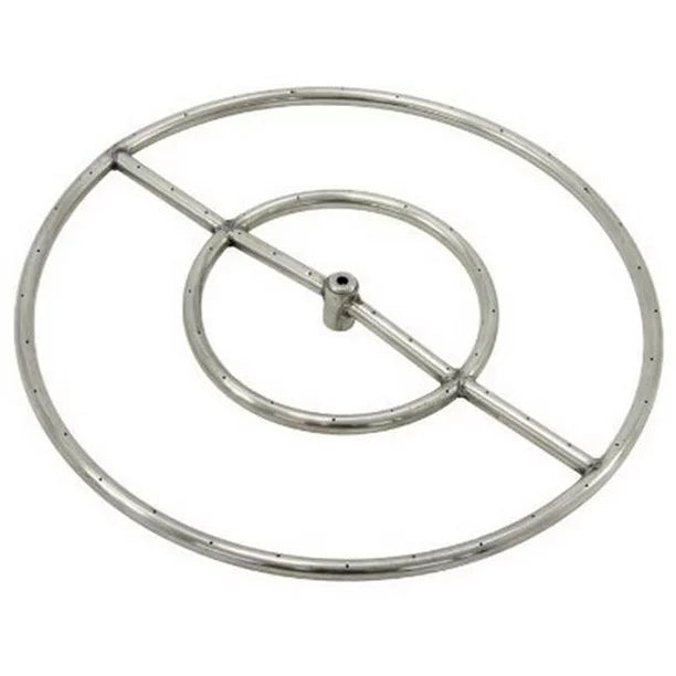 Start building your DIY gas fire pit today! Every feature of this high quality 24 inch round burner was designed for maximum durability and functionality. The burner itself is made from 304 stainless steel, 1/2 inch tubing, drilled ports, and is neatly machine welded so parts fit together seamlessly. The gas inlet is raised from the other tubing to protect against water from entering the gas line, while the inlet itself is a standard 1/2 inch female fitting. The burner ports are drilled instead of punched, and they are standard to allow both proper flow and a more realistic flame pattern while also preventing debris from building up - which can lead to the annoying whistling sound that is often found in lesser quality rings. Made from stainless steel, this fire ring is designed for designed for even the harshest of environments. All in all, the superior construction of this burner ring also results in a more dramatic and luminous fire, for maximum entertainment. This burner can be installed do-it-yourself or by a professional, and is intended for Natural Gas applications; propane applications will need additional components found with this item model number: FRS-24-LP This product only contains the burner ring, to find this burner as part of a complete match lit kit, search for this item model number: FPS24KIT-NG-MSCB