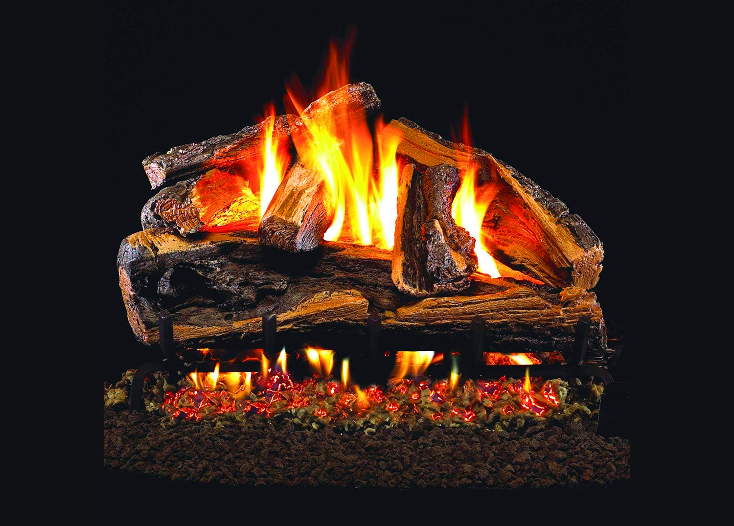 Peterson Real Fyre 24-Inch Rugged Split Oak Gas Logs (Logs Only - Burner Not Included). RRSO-24. Gas Fireplace Replacement Logs. The craftsmanship of Peterson Real Fyre Designer Series Gas Logs captures nature's realism, texture, and subtle nuances. These hand-painted originals, modeled from real-world samples, are sure to add a touch of elegance to any home. Experience the subtle beauty and soothing comfort of a Real Fyre Designer Series gas log display. These Peterson Real Fyre Logs can be used with commonly available fire pit ring burners. Allow a minimum of 3-6 inches of clearance from the edge of logs to the wall of the fire pit. The total number of pieces is 7. All logs have a flat, unfinished back or bottom. For use with vented gas log systems. This log set does not include a burner system. It must be purchased separately