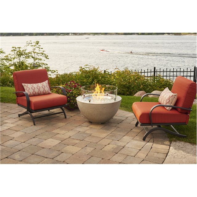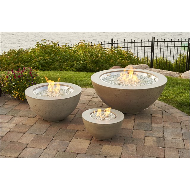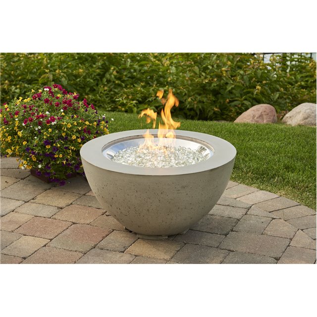 Cove 29" Round Gas Fire Pit Bowl with a Natural Grey Contemporary Concrete Finish.