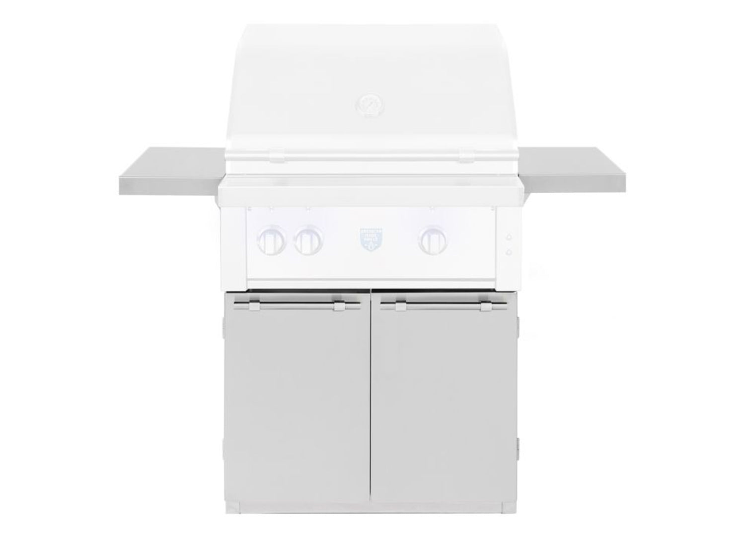 American Made Grills CART-EST30 Freestanding Cart for 30-Inch Estate Grills provides the necessary grill base for your 30-inch Estate gas grill. The stainless steel cabinet features heavy duty locking casters, two collapsible side shelves and double storage doors. The LP tank can be stored directly within the cabinet along with any other grilling accessories you need to store outdoors. Enhance the look of your patio or deck with this premier stainless steel grill base; designed with utility and longevity in mind, this cart will help make the most of your grilling outdoor space for many years to come.