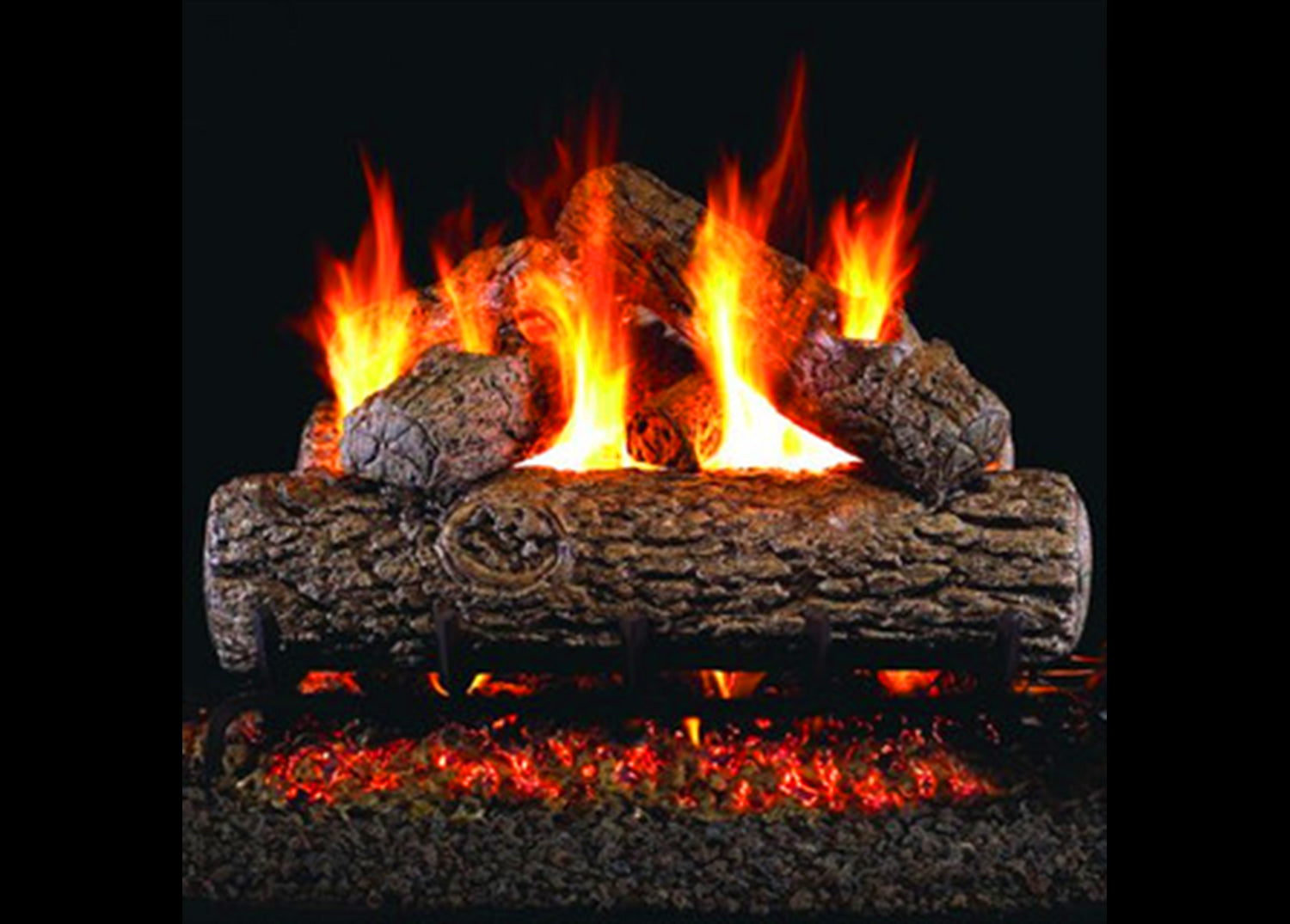 Real Fyre Golden Oak gas logs bring the beauty of nature right into your home. These logs utilize natural colors and high definition bark to bring an authentic wood look to your fireplace. This is a vented gas log burner system designed to be installed in a wood burning fireplace retrofitted with Natural Gas and burned with the open damper.