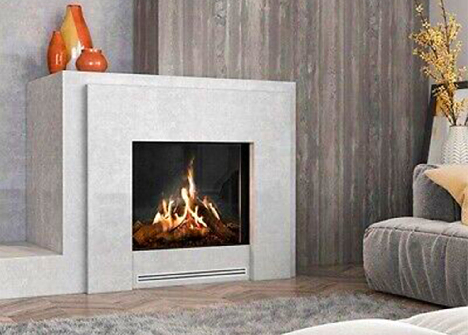 InvisimeshA protective layer of Invisimesh surrounds the glass barrier of the fireplace and provides a warm touchable surface safe for children and pets.