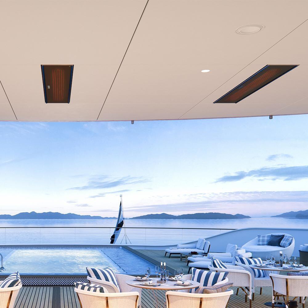 Bromic Heating Platinum Smart-Heat Marine Grade 50-Inch 3400W Dual Element 240V Electric Infrared Heater - Black - BH0320016. BH0320016. Ceiling & Wall Mounted Outdoor Heaters. Bromic's high-quality outdoor heaters and accessories have been developed & engineered specifically for marine applications and coastal environments and are the only outdoor heaters on the market that are fully Lloyd's register certified. Made of high-quality, AISI316 stainless-steel, this Bromic Platinum Smart-Heat Electric Marine heater is specifically engineered to provide superior resistance to the corrosive elements of coastal and marine environments. With the slim, aesthetic design and wind-resistant, radiant heat output, the Platinum Smart-Heat Electric Marine heater is the ideal solution to enrich the comfort experience of owners of coastal residences, superyachts, and guests on cruise ships.This 50-Inch Platinum Smart-Heat Electric Marine ships in a black finish and can be recessed directly into the ceiling, wall-mounted, or suspended from the ceiling to ensure they blend seamlessly into their surroundings. Featuring the most advanced heating technology on the inside and a premium, translucent ceramic glass screen on the outside, the Platinum Smart-Heat Electric Marine heater spreads radiant heat evenly across a large area while minimizing unwanted light emissions.