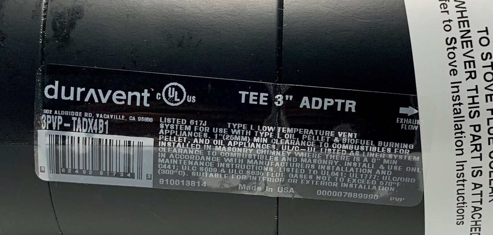 Dura Vent 3PVP-TADX4B1 3 in. Dia. Pellet Vent Pro Black Adapter Branch. It has scratches from being moved around on the shelf (see photos)