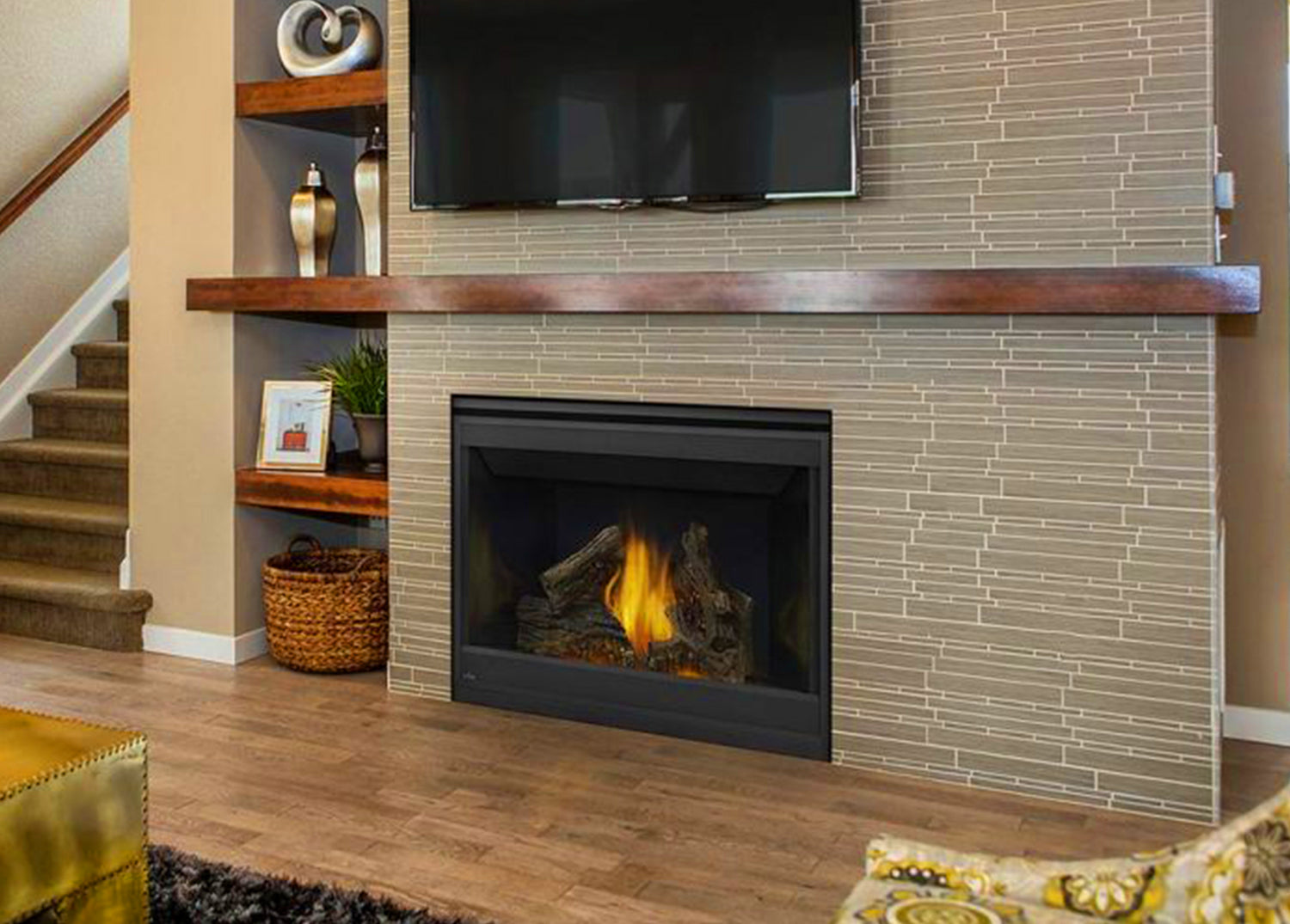 - Direct Vent Gas Fireplace - Gas appliance directly vents outdoors to provide a fuel-efficient heat supply