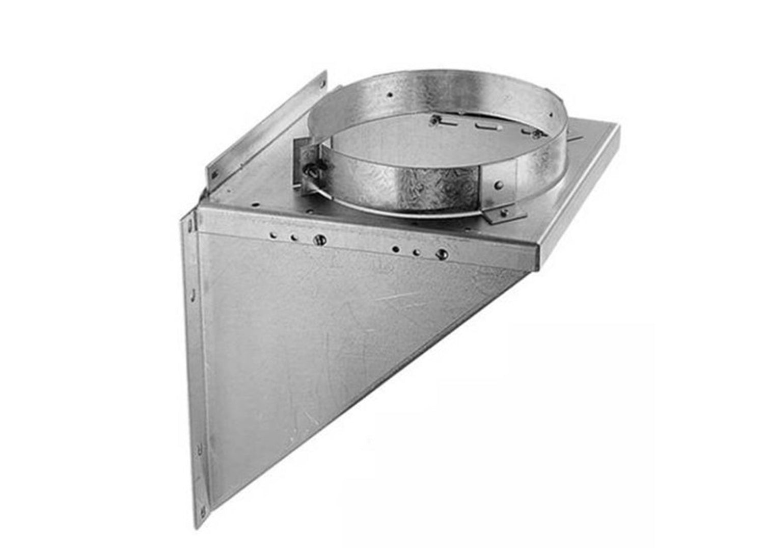 The DuraTech 6" Class A Chimney Pipe Adjustable Galvanized Tee Support Bracket Use as wall support for chimney system. Use of straps is optional. Supports up to 50’ of DuraTech Chimney without straps, and 70’ of DuraTech Chimney with straps. Attaches to chimney pipe. Can be installed above or below the Tee. If installed below the Tee, a short section of pipe is required. Adjustable base provides 2” to 6” clearance to wall.