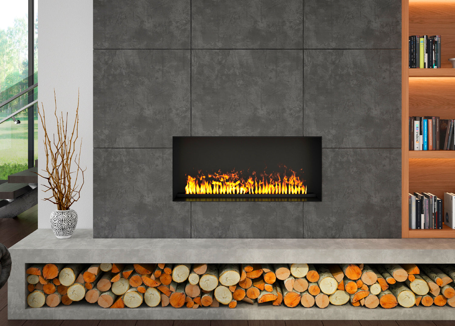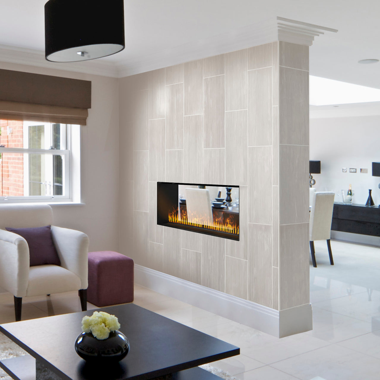 Easily turn fireplace design concepts into reality with the Opti-myst Pro 1000 Built-in Electric Firebox. Install as a single-sided unit, or remove the included backer panel and convert to a see-through design that opens the view between rooms. The discrete heater completes the functionality and ensures perfect comfort in addition to the dazzling Opti-myst flame and smoke effect.