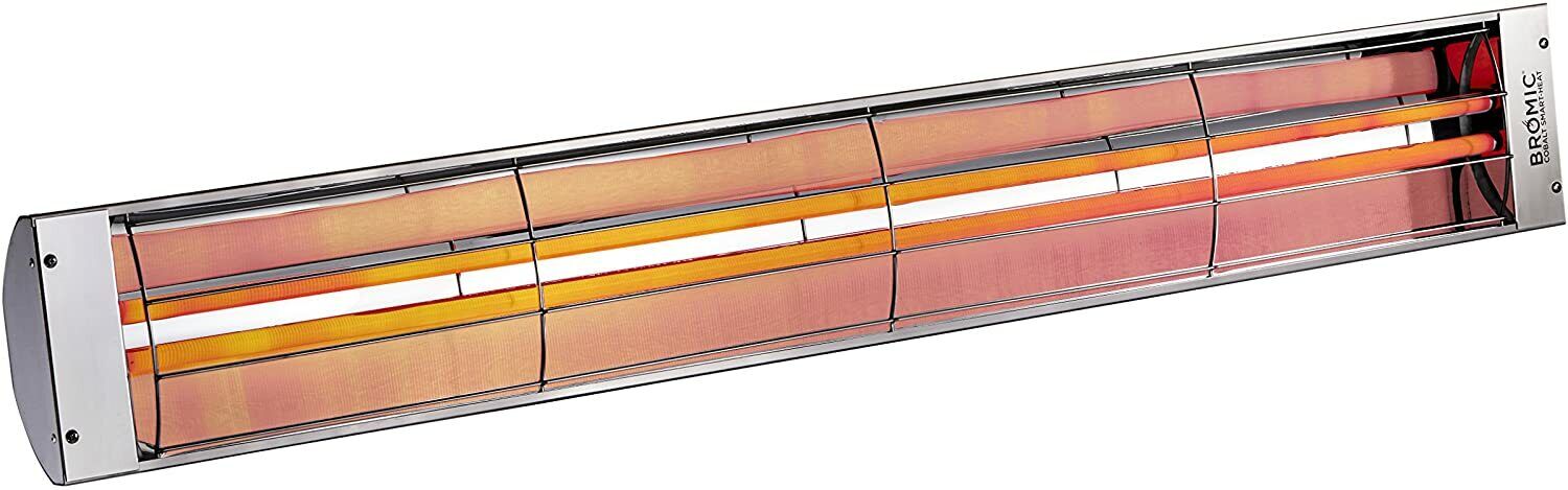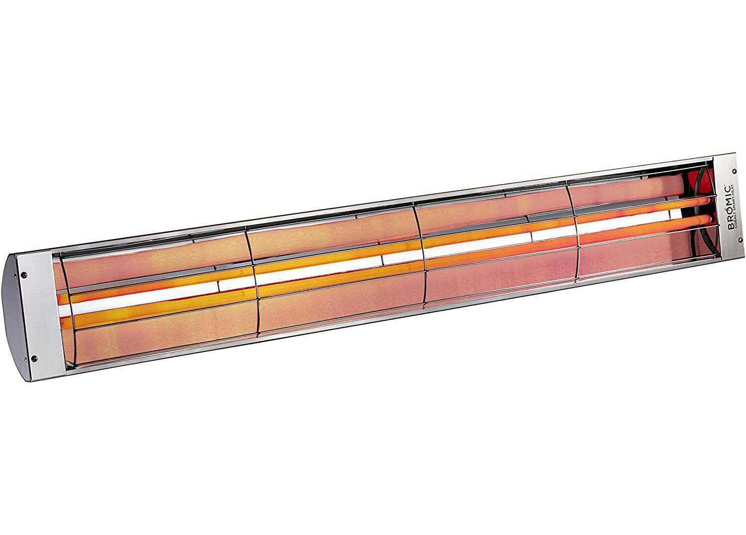 The 6000w cobalt smart-heat electric heater, for an entry-level heater, is full of value. The body of this rugged electric heater is constructed entirely from type 304 stainless steel, providing reliability & longevity. The two high-output, durable elements create a Soft red glow & radiant heat for heating up to 160 square'. the mirror-finish anodized rear reflector directs lost infrared energy back toward the target, maximizing performance & efficiency. The heater can be mounted on the ceiling or wall, & the adjustable bracket allows you to direct the heat right where you want it. Minimum distance to combustibles is just 12" on the short sides & 18" from the long sides, so the cobalt is a perfect for lower ceilings where a gas heater is not suitable. it can be integrated into smart control system or controlled with the bromic accessory on/off (br-wrcw) or dimmer (br-wdcw) controllers. 6000w output requiring 240V/25 amp. Bh0610004