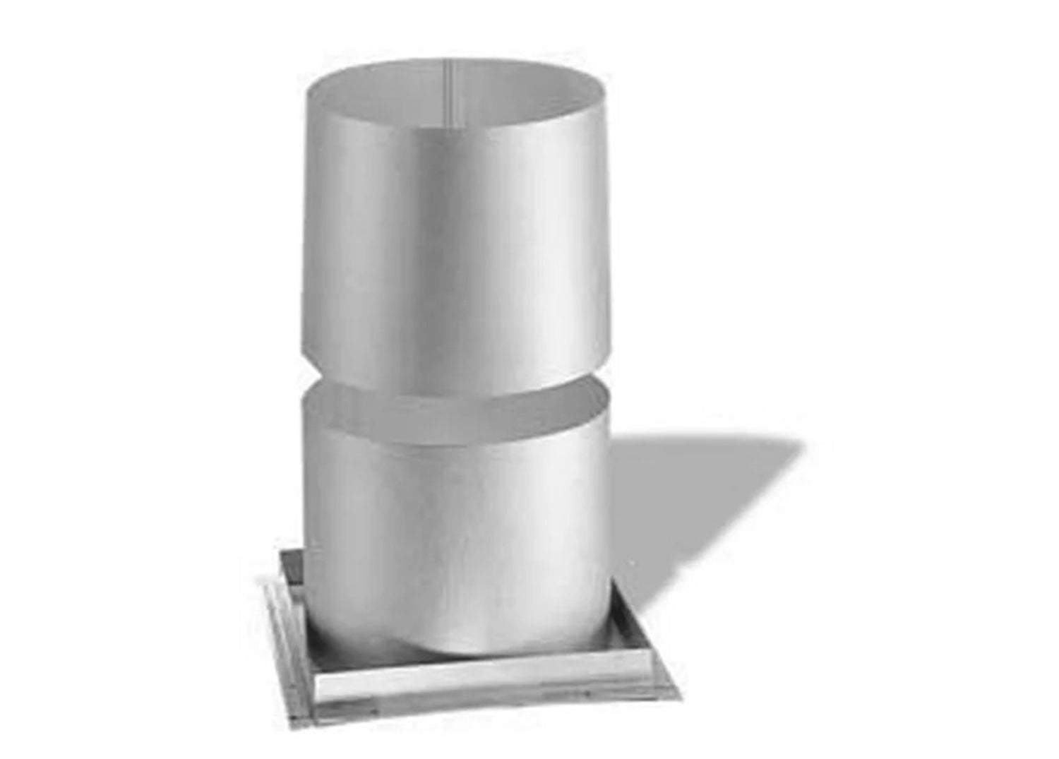 The Firestop Radiation Shield is installed where a chimney passes through a floor or ceiling without the use of a support box. It is used to center the pipe and assure the proper clearance required for the installation. The Firestop Radiation Shield adjusts to cover wide framing and fits on the underside of the ceiling.