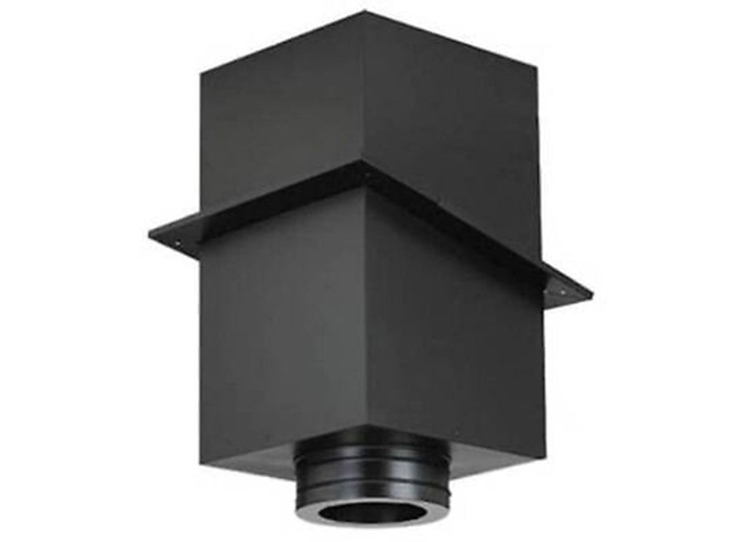 The DuraTech 8" Class A Chimney Pipe 11" Square Ceiling Support Box is used to support chimney pipe and provides a positive connection between support box and chimney with a built-in twist lock. Suitable for both flat and cathedral (A-Frame) ceiling applications. Also is used in short attic spaces (see instructions). Fits between standard 16” on-center joists and most manufactured home applications. Supports up to 60' of DuraTech Chimney. Use adapter to attach DVL or DuraBlack to the support box. A 2” wide trim collar is included. Painted black.