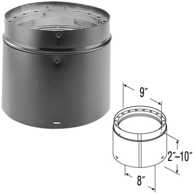 - The DVL Double-Wall Adjustable Black Pipe is used for adding length to any DVL Double-Wall Black Pipe. The adjustable pipe adds 2" - 10" of length when used with rigid sections of pipe. This component can be ovalized for oval-to-round appliance connector. DuraVent DVL is a double-wall interior stovepipe for connecting woodstoves to a manufactured chimney. See all 8" DVL Chimney Components .