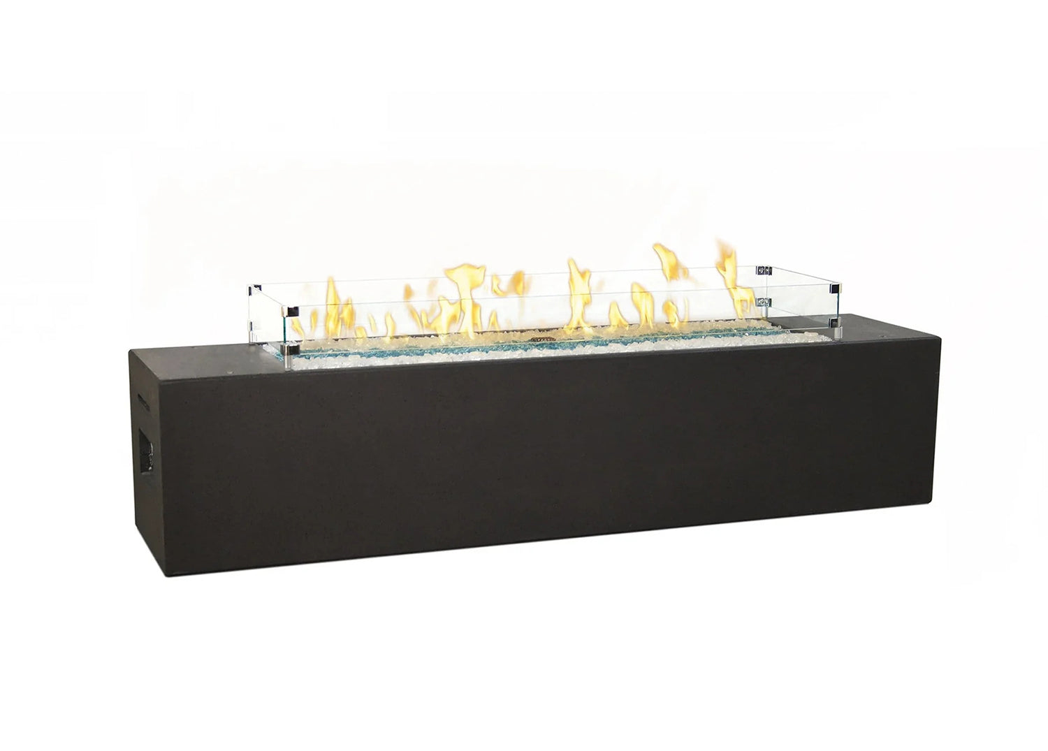 American Fyre Designs 72" Milan Low Linear Gas Firetable is a stylish and functional piece of outdoor furniture. Our Firetables create the perfect ambiance for enjoying an outdoor meal or cocktail while also keeping you warm from the evening chill. Handcrafted from glass fiber reinforced concrete (GFRC). Available in seven colors - White Aspen, Cafe Blanco, Black Lava, Smoke, Travertine, Dark Basalt, and Light Basalt. Choose a color that matches or complements your outdoor decor. Fuel options include Natural Gas or Propane with two Ignition Options - Manual or FyreStarter Ignition System.