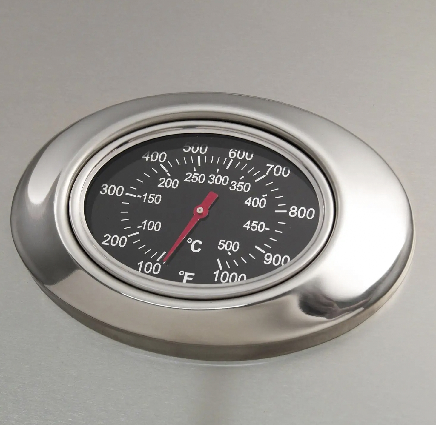 - Analog Thermometer Distinctfully designed for American Outdoor Grill, the analog thermometer with polished steel bezel provides a beautiful accent while providing control over the food you're grilling.
