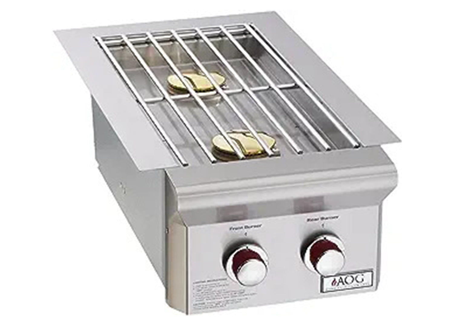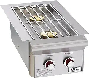 American Outdoor Grill T-Series Drop-In Natural Gas Double Side Burner - 3282T. 3282T. Conventional Side Burners. This American Outdoor Grill T-Series drop-in side double burner easily installs into any custom grill island and is perfect for cooking or reheating side dishes and sauces. This heavy-duty double burner features 304 series stainless construction, stainless steel rod grid, stainless steel cover, and two 12,500 BTU brass burners. The brand-new Piezo Rapid Light ignition fires you up that much quicker with no need for electricity or batteries. No insulated jacket required for combustible installation. This side burner ships as Natural Gas with Propane Conversion fittings.