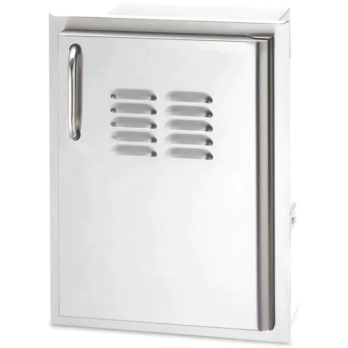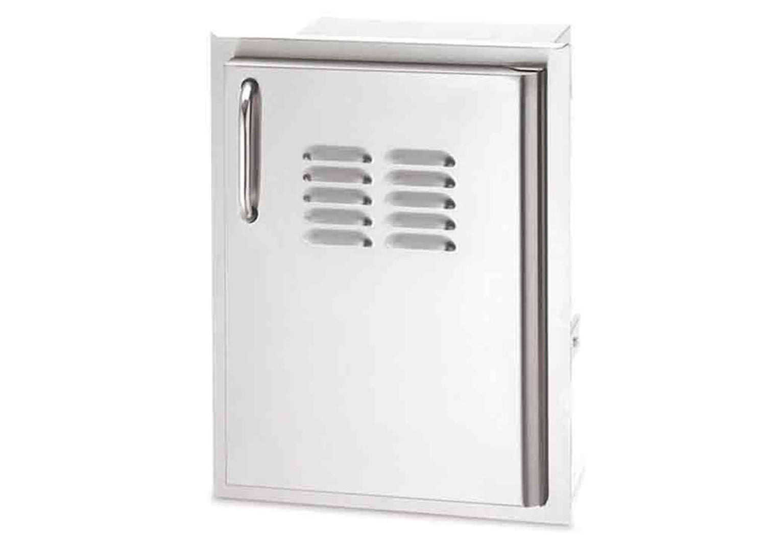 The AOG Single Access Door w/ Tank Tray - 20" x 14" will conceal your propane tank. The attractive and sleek stainless steel door will look great installed in your outdoor kitchen. The sliding tray allows for easy access to your propane tank. This unit has louvers for added ventilation and a stylish handle designed to complement any American Outdoor Grill.