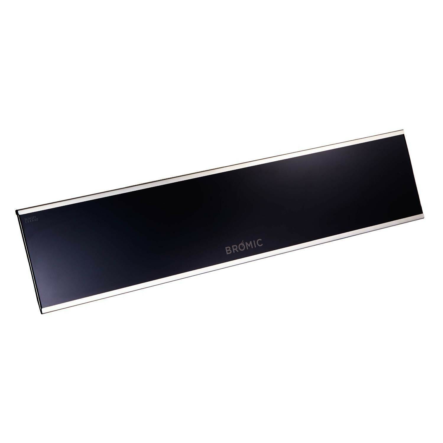 Bromic Heating Platinum Smart-Heat Series II 50-Inch 3400W 11,600 BTU 240V Electric Patio Heater - Black - BH0320005. BH0320005. Ceiling & Wall Mounted Outdoor Heaters. Bromic Heating leads the market in supplying your outdoor patio with radiant heaters that demonstrate outstanding performance and unbeatable quality. The Platinum Smart-Heat patio heater is the premier electric heater available on the market. With a 3400 Watt (11,600 BTU) output, the heater can heat a 64 square feet area quickly and efficiently. It has multiple mounting options, so it can be attached to the wall, ceiling, or even recessed. Its wafer-thin 2-inch low profile makes it highly wind resistant, and its sealed case makes its weather resistance excellent. The included bracket allows for 60 degrees of motion so you can direct the heat where you want it. The tinted glass cover allows the heat to get through but subdues the light, letting the heater emit a soft red glow instead of the harsh orange glare found on lesser infrared heaters. The stainless steel construction makes it perfect for residential and commercial installations. The Platinum Electric heater can be controlled via simple wall switch, or wirelessly with the optional wireless controller or wireless dimmer controller. This heater uses 240V AC current and must be hard-wired by a licensed electrician. Please consult a licensed electrician to determine suitability for purpose.