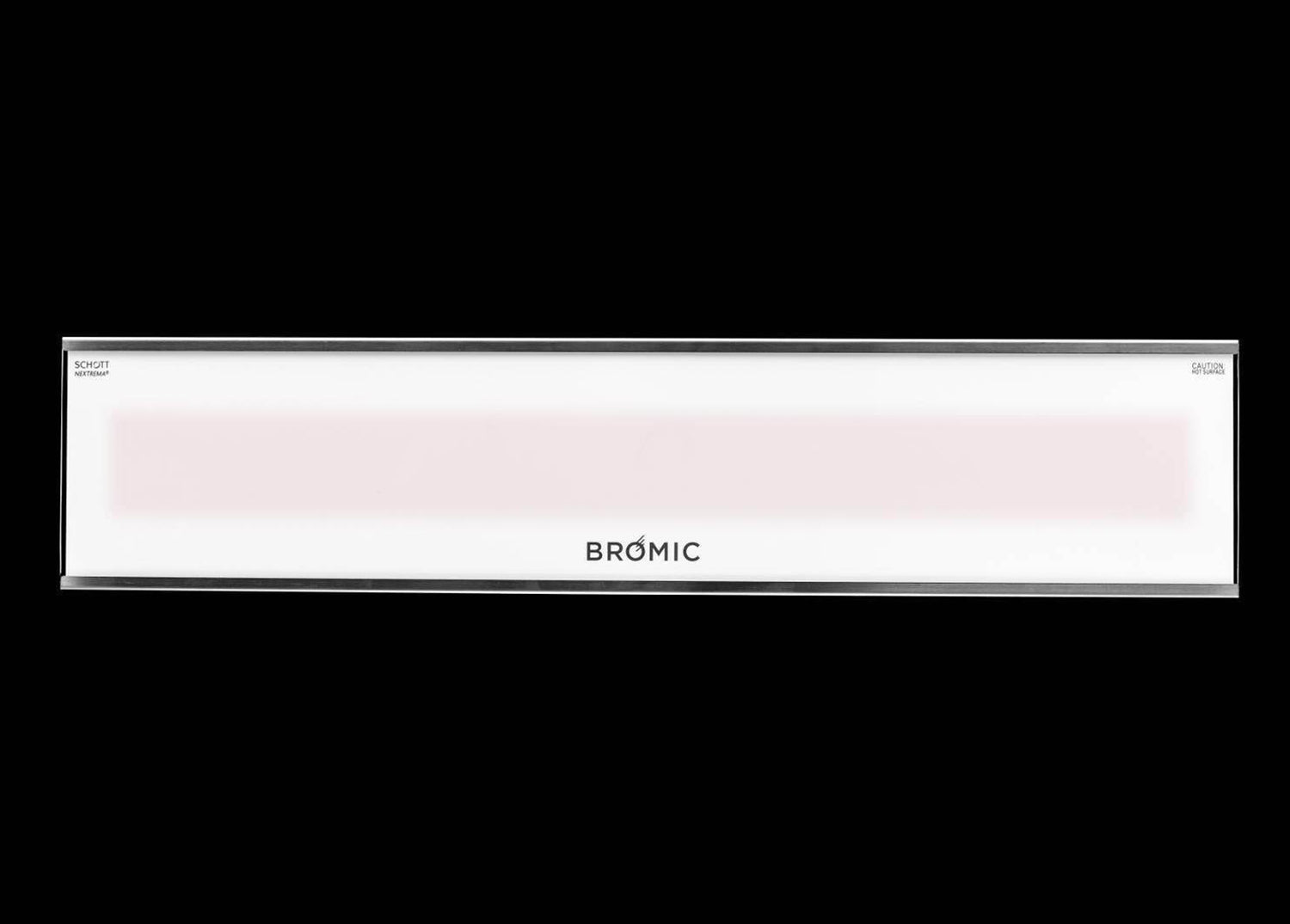 Bromic Heating Platinum Smart-Heat Series II 50-Inch 3400W 11,600 BTU 240V Electric Patio Heater - White - BH0320008. BH0320008. Ceiling & Wall Mounted Outdoor Heaters. Bromic Heating leads the market in supplying your outdoor patio with radiant heaters that demonstrate outstanding performance and unbeatable quality. The Platinum Smart-Heat patio heater is the premier electric heater available on the market. With a 3400 Watt (11,600 BTU) output, the heater can heat a 64 square feet area quickly and efficiently. It has multiple mounting options, so it can be attached to the wall, ceiling, or even recessed. Its wafer-thin 2-inch low profile makes it highly wind resistant, and its sealed case makes its weather resistance excellent. The included bracket allows for 60 degrees of motion so you can direct the heat where you want it. The tinted glass cover allows the heat to get through but subdues the light, letting the heater emit a soft red glow instead of the harsh orange glare found on lesser infrared heaters. The stainless steel construction makes it perfect for residential and commercial installations. The Platinum Electric heater can be controlled via simple wall switch, or wirelessly with the optional wireless controller or wireless dimmer controller. This heater uses 240V AC current and must be hard-wired by a licensed electrician. Please consult a licensed electrician to determine suitability for purpose.