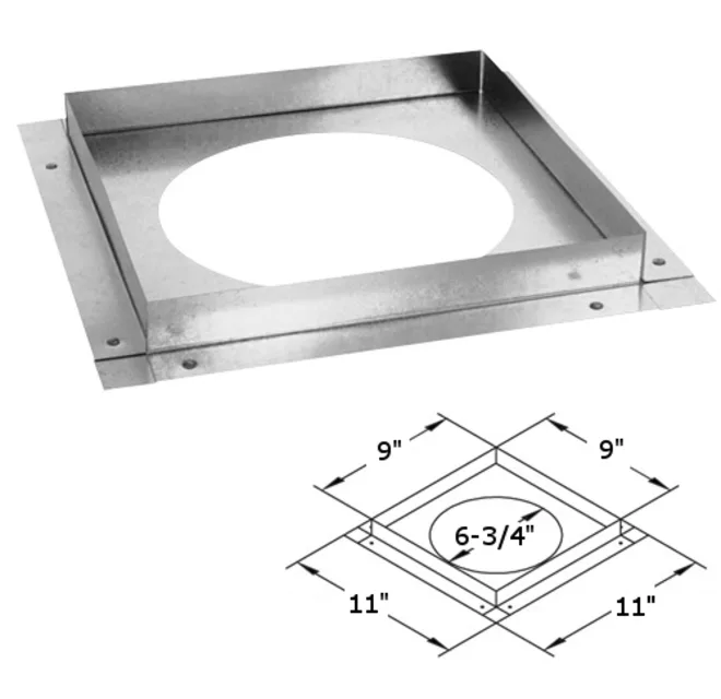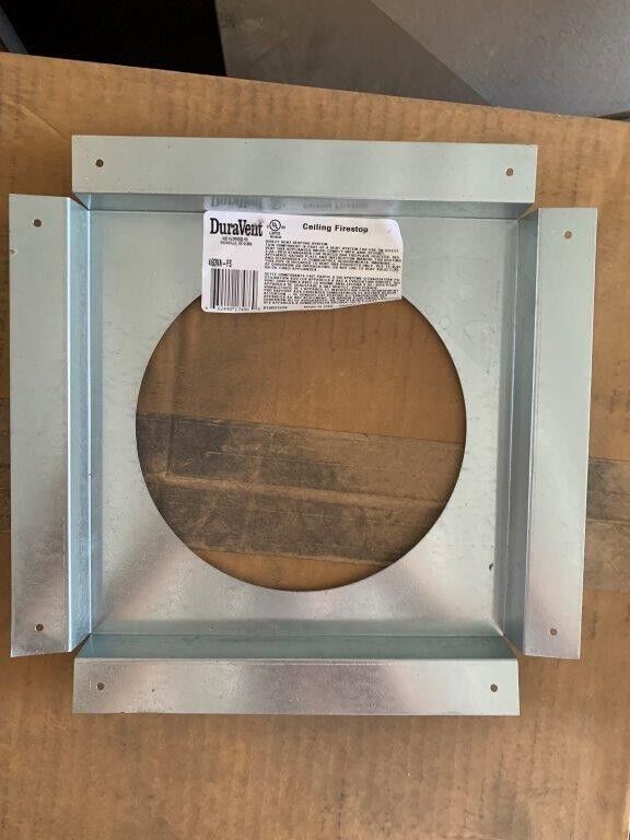 The DirectVent Pro 4" x 6-5/8" Inner Diameter Galvanized Ceiling Firestop is a component that is used in a typical venting installation. A ceiling fire stop is required for multi-story vertical installations at the second floor and any subsequent floors.