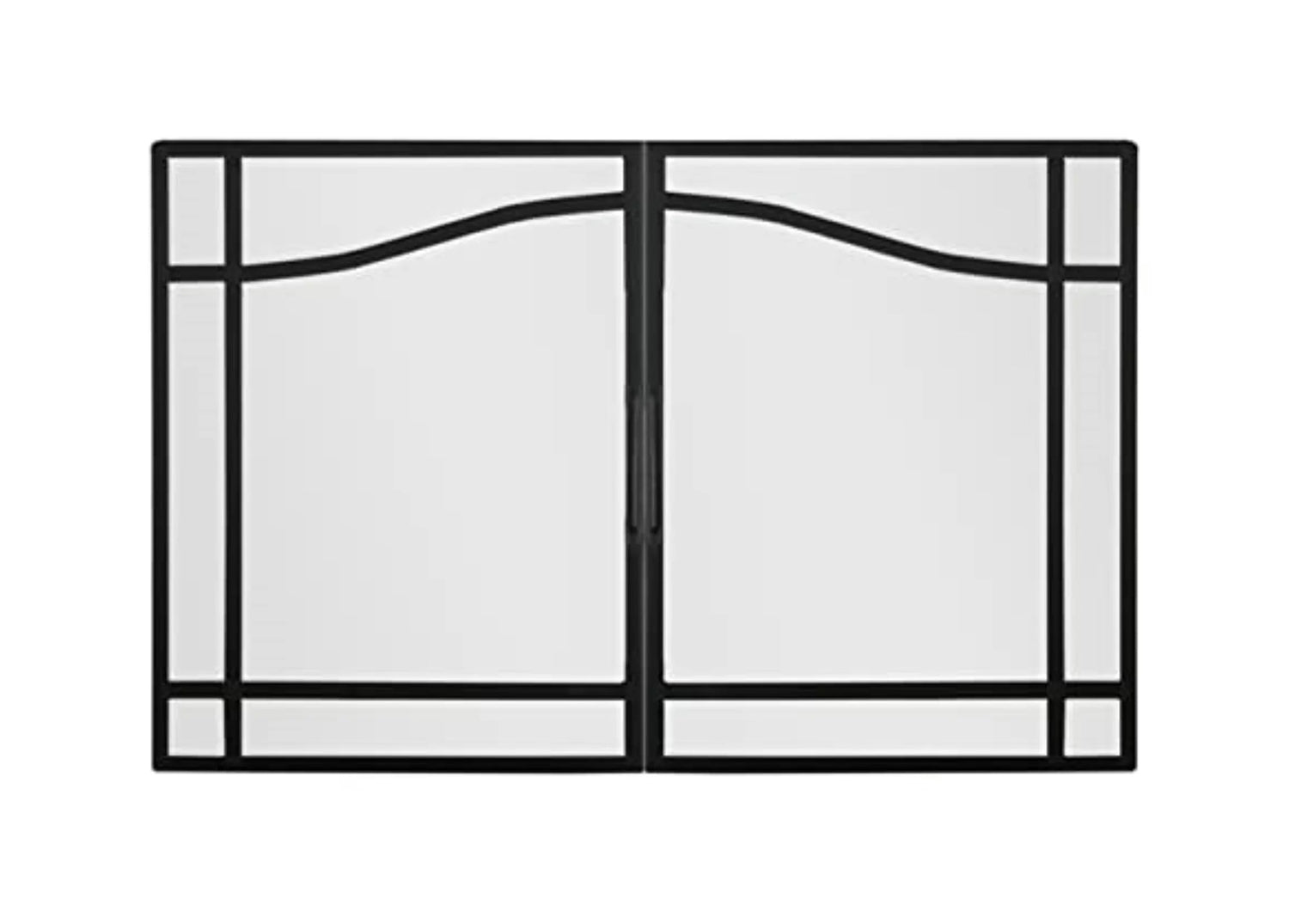 BFSDOOR39BLK Dimplex Glass Swing Door Kit 39" BF39STP Firebox Add traditional charm with a classic fireplace door design. Black curved details add an element of design. Doors swing outward from the center. The tempered glass is strong and durable and makes this accessory safe to touch when the fireplace emits heat