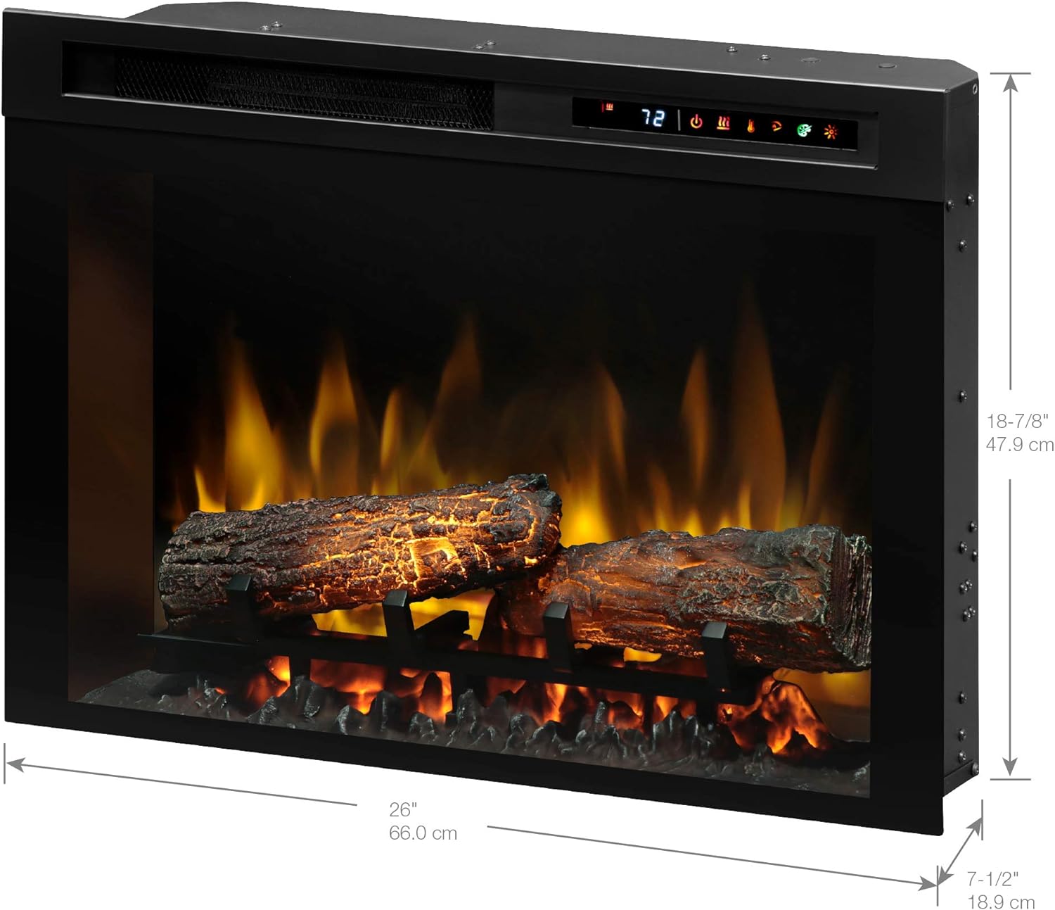 Dimplex 26 Inch Built-in Electric Fireplace - Multi-Fire XHD Firebox with Logs and Realistic Multi-Color Flames | Model: XHD26L