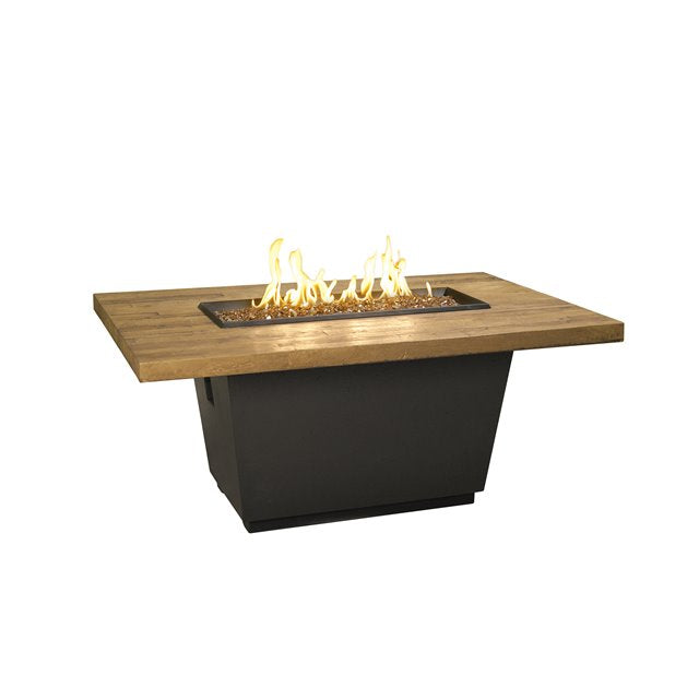 Reclaimed Wood Cosmo Rectangle Firetable with Black Lava Base and Silver Pine Top.