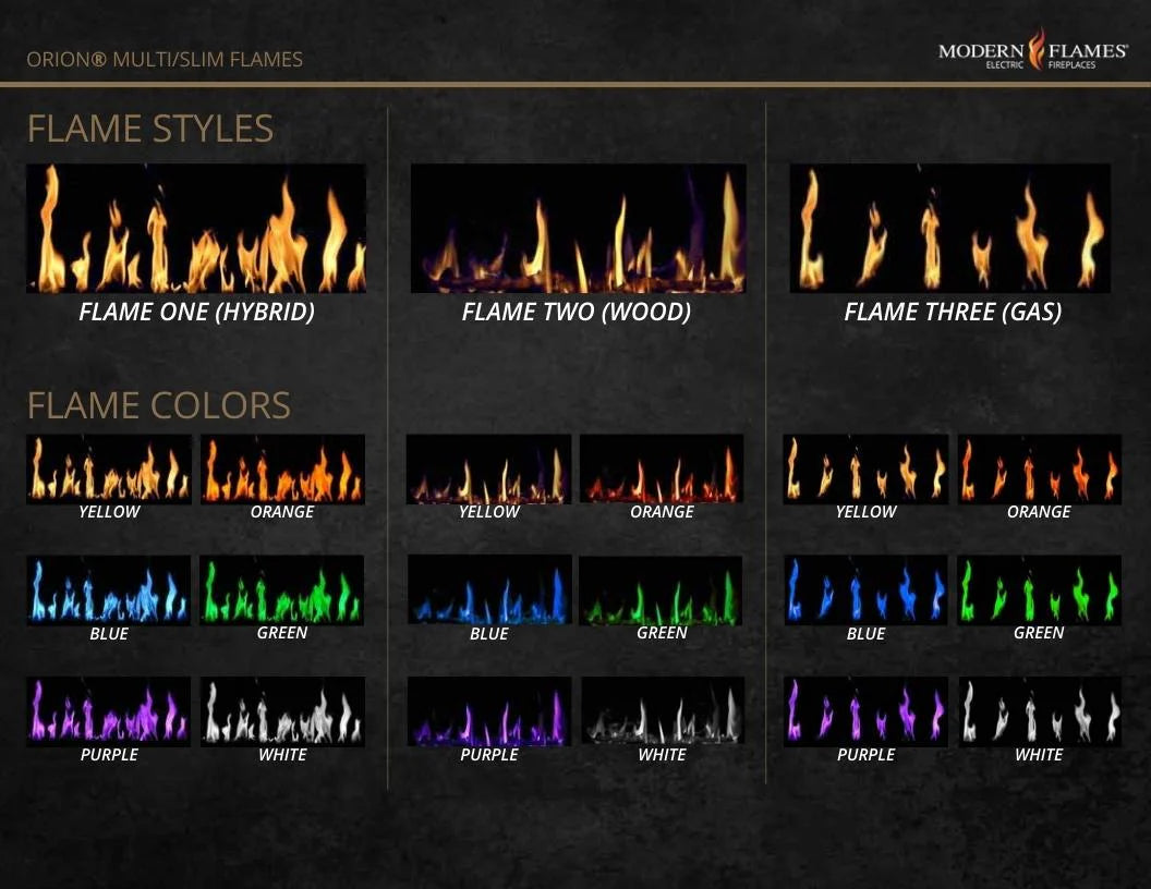 Elevate your home's ambiance with the Modern Flames Orion 100" Multi-Sided Electric Fireplace featuring Heliovision technology. This stunning fireplace offers a truly immersive viewing experience with its expansive 100-inch width and multi-sided design, allowing you to enjoy the mesmerizing flames from multiple angles. The innovative Heliovision technology creates ultra-realistic flame effects with customizable color options, bringing a touch of luxury to any room.