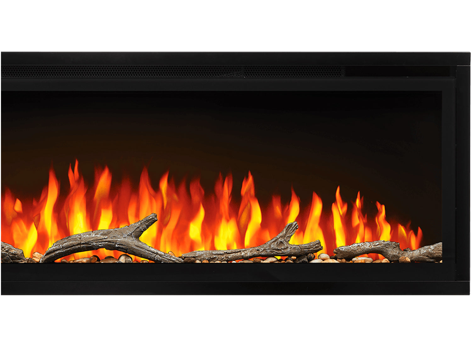 Make a statement with the Napoleon Entice™ 50 Electric Fireplace. This fireplace puts out an incredible amount of heat, glittering with multicoloured flames and a crystal ember bed. You don't need a specialist or a gas fitter for this expansive beauty, just hang on the wall and plug in for instant transformation of your space. Traditional orange flames, or cool blue flames, or a combination of the two will set the mood. The shallow depth means that this fireplace doesn't intrude into your living space, but simply accents it with the expansive view of the fire. Place this electric fireplace anywhere you want to make a huge impact, perfectly suited for either your home or a commercial setting.