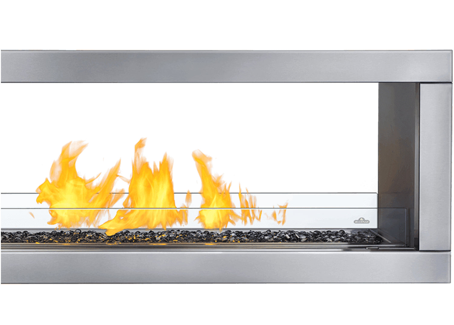 The Napoleon Galaxy™ See Thru Outdoor Gas Fireplace is truly unique with a linear, sleek modern design adding to the excitement of outdoor living. Napoleon's Galaxy™ See Thru outdoor linear gas fireplace is also available as a one-sided (GSS48) unit and is constructed of weather resistant brushed stainless steel for maximum outdoor durability. The Galaxy™ See Thru features a glass wind deflector to ensure operation in windy conditions as well as a safety valve that turns the gas supply off if the flame goes out.