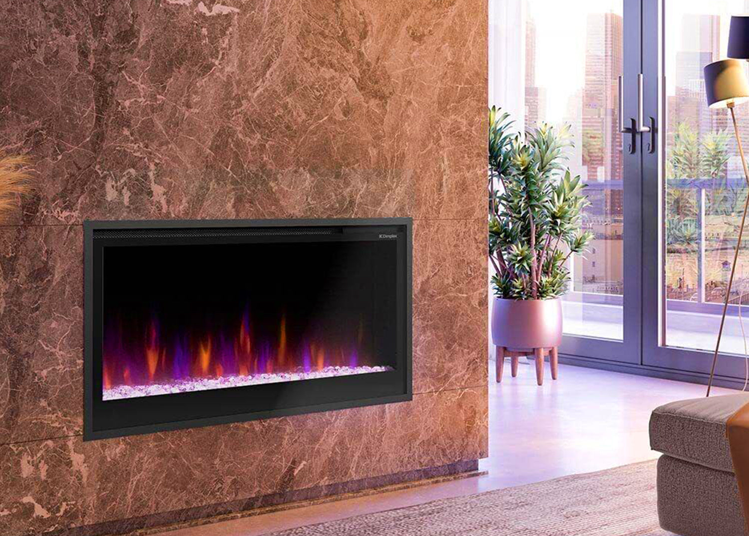 With a slim depth of just 4-inches, the Dimplex 50" Slim Built-In Linear Electric Fireplace makes it easy to add a fireplace to ANY wall. Without the depth constraints of a typical electric fireplace insert, the Dimplex Slim can be flush mounted in 2" x 4" framed walls - an industry exclusive feature. Simple wall mounting is also an option for those looking for an easier DIY project. Easily add the appeal of a fireplace to apartment complexes, condos and town homes. The patented Multi-Fire SL flame effects create life-like, high contrast flame effects with layered colors for added realism. A variety of flame colors, flame speeds, ember bed colors and brightness settings can be adjusted based on personal preference. The large viewing area with mirrored technology give both the flames and firebox a greater illusion of depth. Maximizing its functionality year-round, the fireplace features a supplemental heater that warms up to 400 Sq. Ft., but can also be turned off for flame-only enjoyment. The included multi-function hand-held remote or Flame Connect app for your mobile device creates added convenience for adjusting the fireplace features including flame, heat and the on/off timer.Share