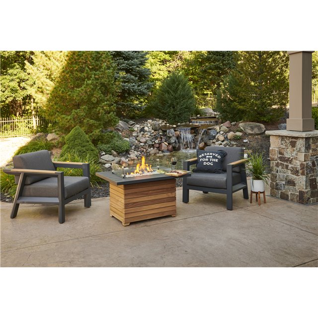 - ADDITIONAL FEATURES - The fire pit includes a 12" x 24" Crystal Fire Plus Burner with clear tempered fire glass gems and a matching burner cover. Use teak sealer to keep the wood's warm, honey glow or allow it to naturally age into a silvery grey patina