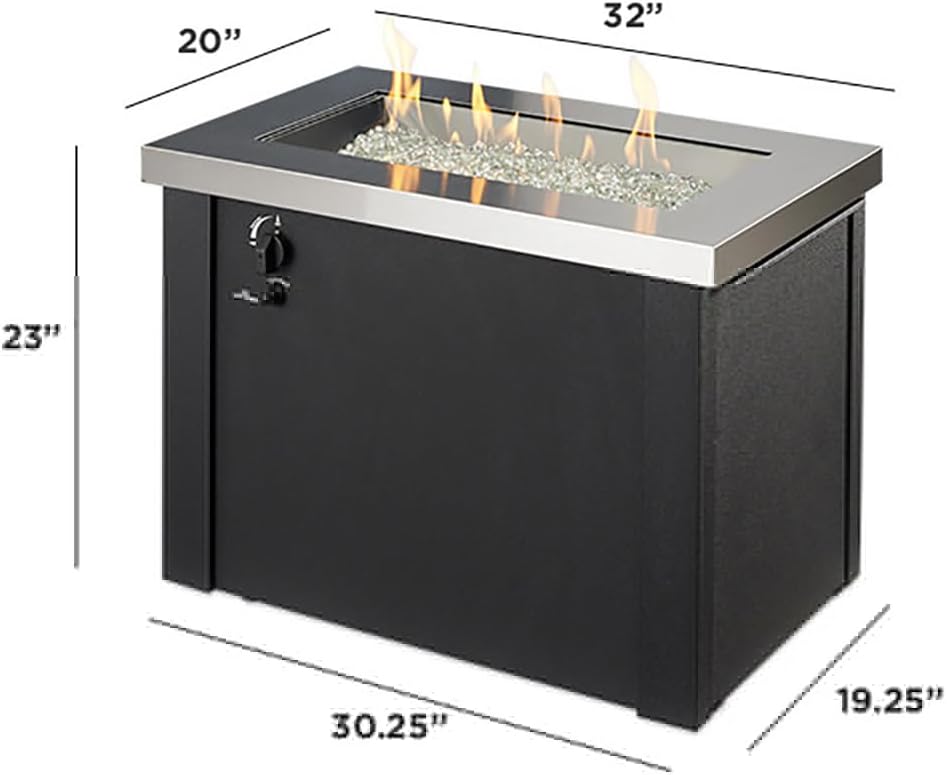 Outdoor Great Room Propane Fire Pit Table - 32" Rectangular, Stainless Steel Firepit Fire Table