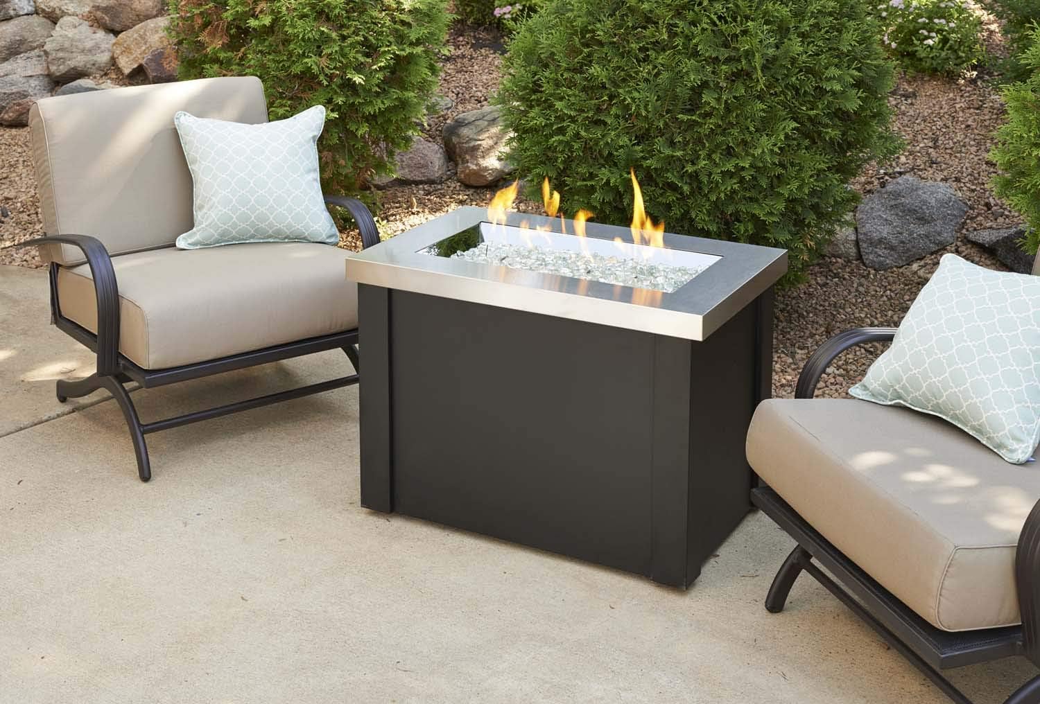 Enhance your outdoor living space with the sophisticated Outdoor GreatRoom Co. Providence Propane Fire Pit Table. Featuring a sleek stainless steel top and a durable metal base, this 32-inch rectangular fire pit table is designed to complement any patio or backyard decor. The 55,000 BTU burner provides ample heat, ensuring a warm and inviting atmosphere for your outdoor gatherings.