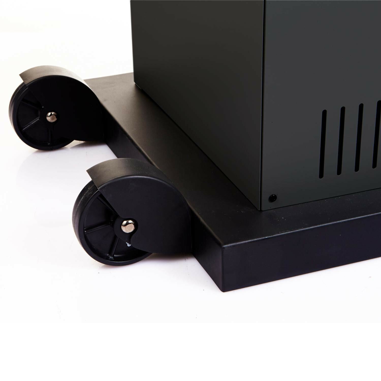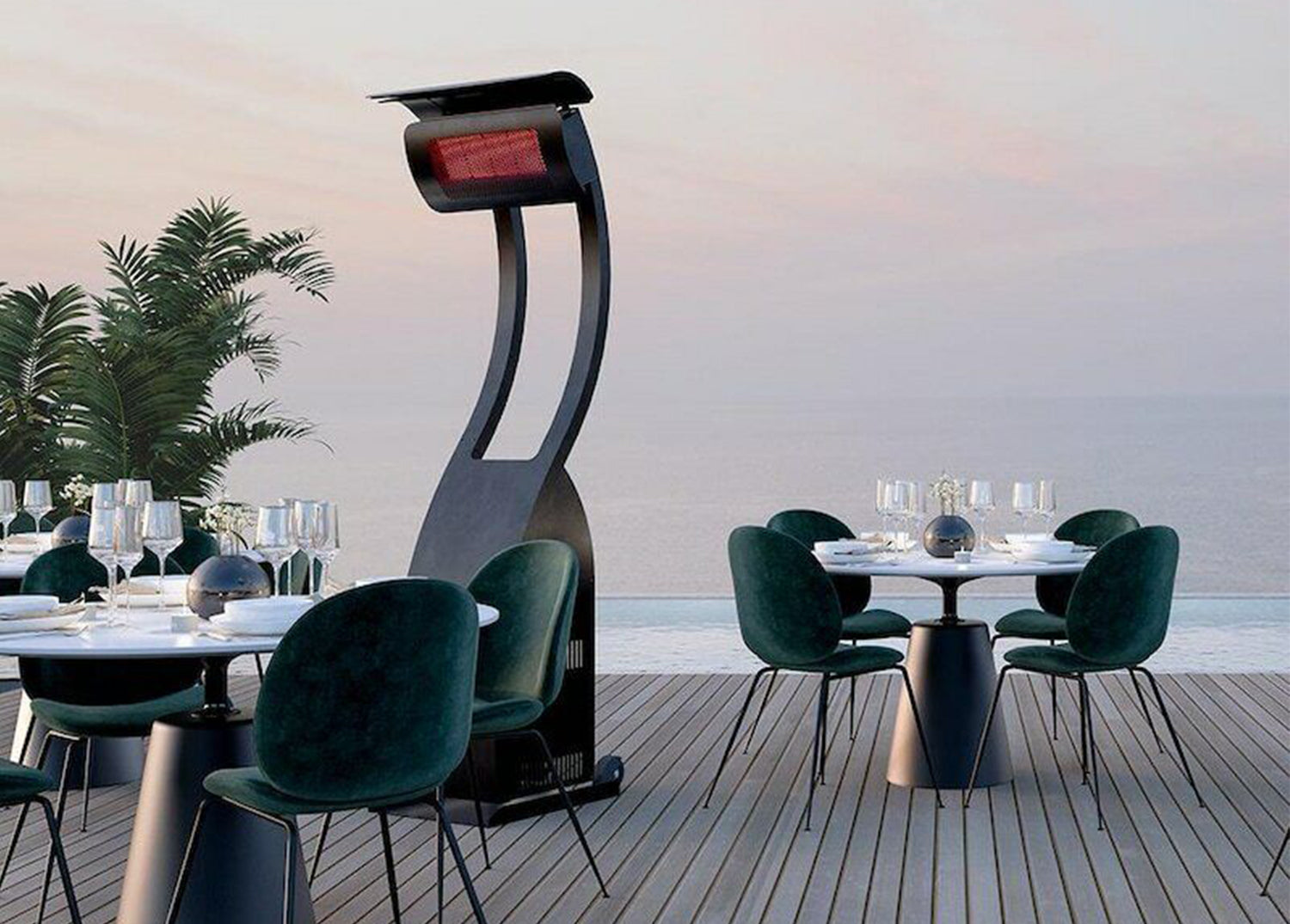 Bromic Heating Tungsten Smart-Heat 38,500 BTU Propane Gas Freestanding Portable Patio Heater - BH0510001. BH0510001 + BH8280001. Freestanding Patio Heaters. Bromic Heating leads the market in supplying your outdoor patio with radiant heaters that demonstrate outstanding performance and unbeatable quality. Unlike the elements on dome or mushroom style portable patio heaters, the 38,500 BTU infrared directional standing Tungsten heating element does not suffer from vertical heat loss. Most heaters heat the air around them. As that hot air rises, the heater ends up heating the air above them instead of the people and space around them. The radiant heater element on the Bromic Tungsten Freestanding Portable Heater heats directionally to warm 200 square feet, up to twice the area of other portable dome, mushroom or tower style propane heaters. The heat radiates evenly so the warmth is directed toward people and deep into open areas. A single push of a button starts the heater, and a control knob allows you to increase or decrease the heat output as needed. The Bromic-patented wind resistance technology lets this heater work in winds with gusts of up to 11mph while remaining lit. If the flame is blown out, the built-in regulator automatically disables the supply of gas. The tower style modular design allows for easy dis-assembly and storage in the off season.