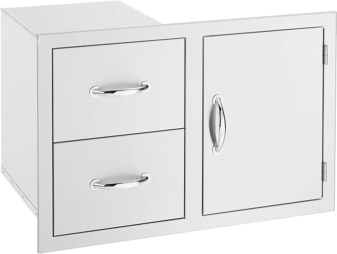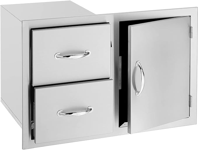 The Summerset SSDC2-42 2-Drawer/1-Door Combo, 42-Inch provides a high quality access door option--a terrific addition to your custom outdoor kitchen. The high quality 304 stainless steel construction ensures a long lasting product, while the stainless steel mounting bracket provides a durable frame to mount the door to your grill island. The matching Summerset handles coordinate with the Summerset line of grills for a seamless look and the magnetic latch provides a secure closure. Be sure to complete your outdoor kitchen with everything that you need, including this two-drawer and one-door combo unit from Summerset.