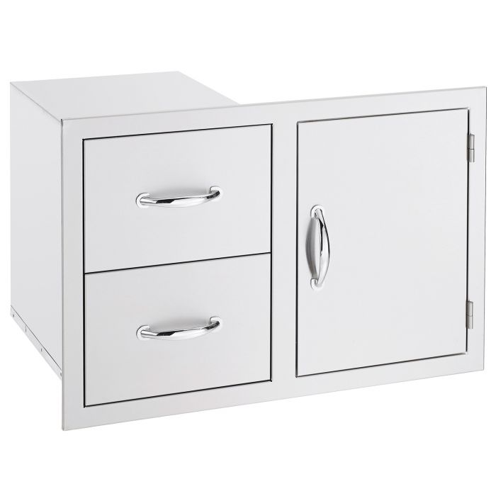 Summerset SSDC2-33 Access Door & Double Drawer Combo, 33-Inch provides a high-quality access door option--a terrific addition to your custom outdoor kitchen. The high-quality 304 stainless steel construction ensures a long-lasting product, while the stainless steel mounting bracket provides a durable frame to mount the door to your grill island. The matching Summerset handles coordinate with the Summerset line of grills for a seamless look and the magnetic latch provides a secure closure. Be sure to complete your outdoor kitchen with everything that you need, including this Door/2-Drawer Combo from Summerset.