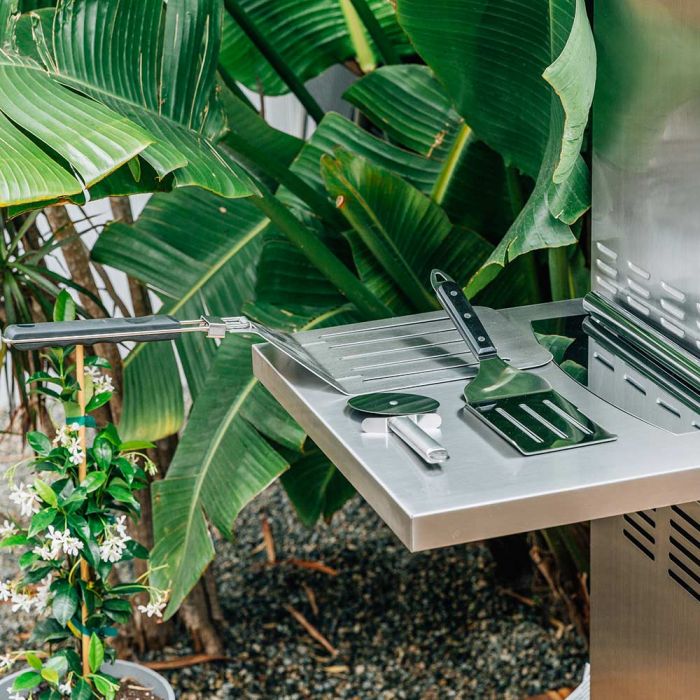 Summerset SS-OVFS Freestanding Outdoor Oven, 23-Inches provides a premium addition to your outdoor kitchen. Featuring heavy duty 304 stainless steel construction, this oven offers quality construction designed to outlast the competition. With a 16,000 BTU main burner, three cooking racks, and a convenient storage drawer, this unit has everything you need to add variety to your cooking when using your outdoor space. This oven also features a large capacity and can fit items up to a 16-inch pizza to ensure you always have enough room for great baking. The included freestanding oven cart features a large storage door for LP tank storage as well as fold-down side shelves for added convenience.