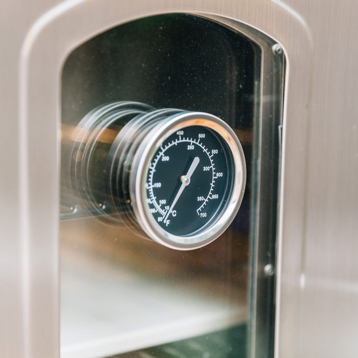 - User-Friendly Design - Front view window with temperature gauge allows for easy monitoring of food