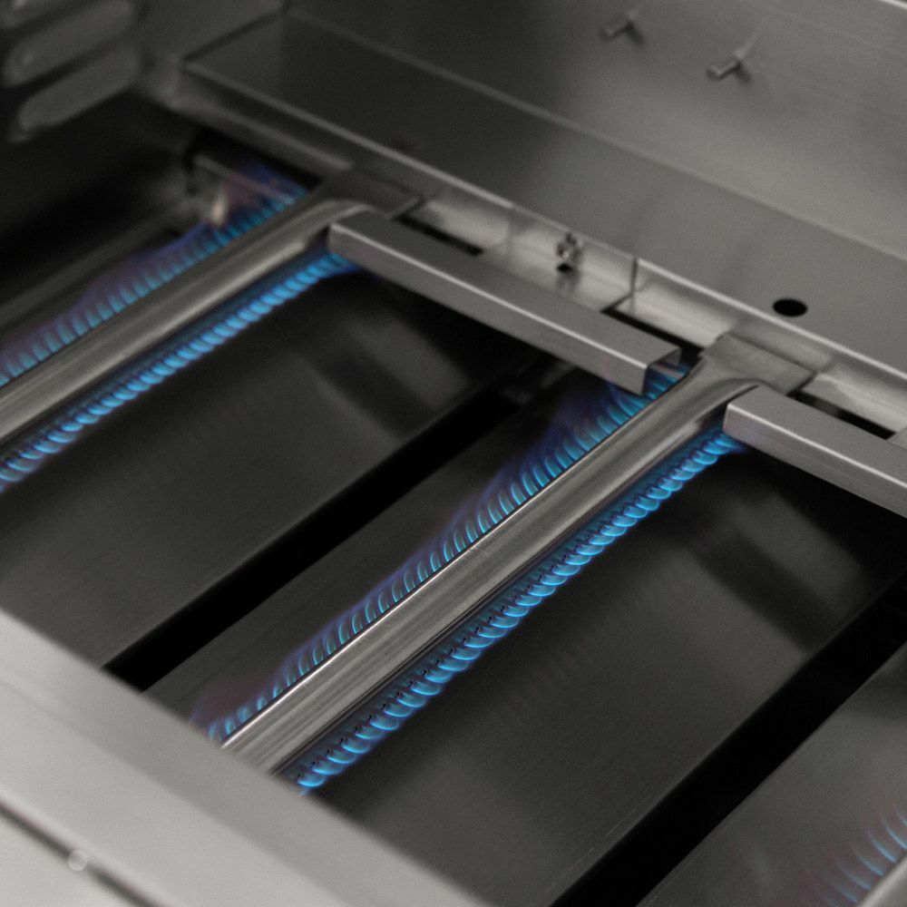 - Stainless Steel Tube Burners - (3) heavy duty #304 stainless steel burners are rated at 12,000 BTU each