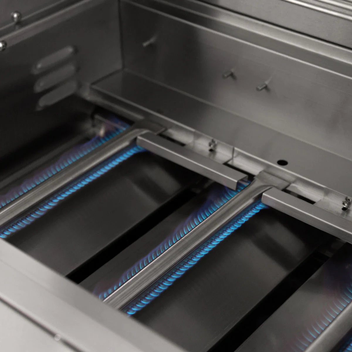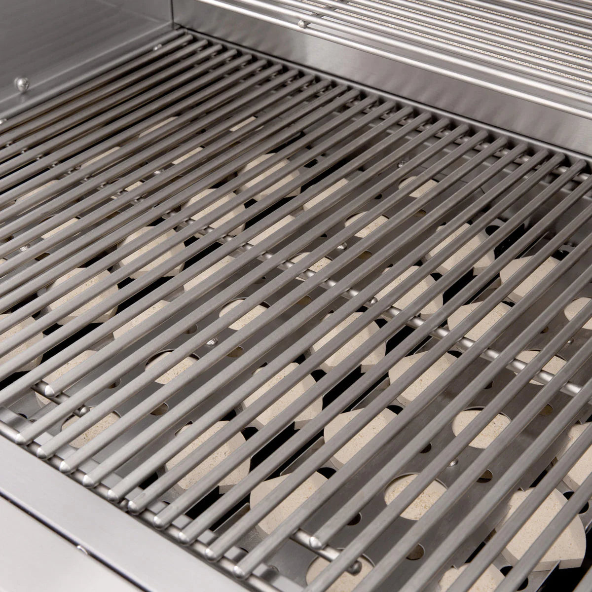 The Sizzler series by Summerset is designed to be an affordable, premium style grill. Constructed with 443 grade stainless steel and built to ensure even heating, this gas grill offers a cooking experience that will satisfy outdoor chefs of any level. This 26-inch built-in propane gas grill is powered by three 12,000 BTU 304 grade stainless steel tube burners that push a total of 36,000 BTUs. The cooking space measures 560 square inches, and the grates are built from 8mm stainless steel rods. The SIZ26-LP grill also features an easy-clean briquette system, which helps reduce flare ups and ensures the grill has even heating across the grilling surface. Ignition is safe and convenient, thanks to a flame-thrower style ignition that also includes a manual flash tube backup. The hood of the grill is double lined to help prevent discoloration, and it boasts a 3-inch temperature gauge which helps keep track of internal temperatures.