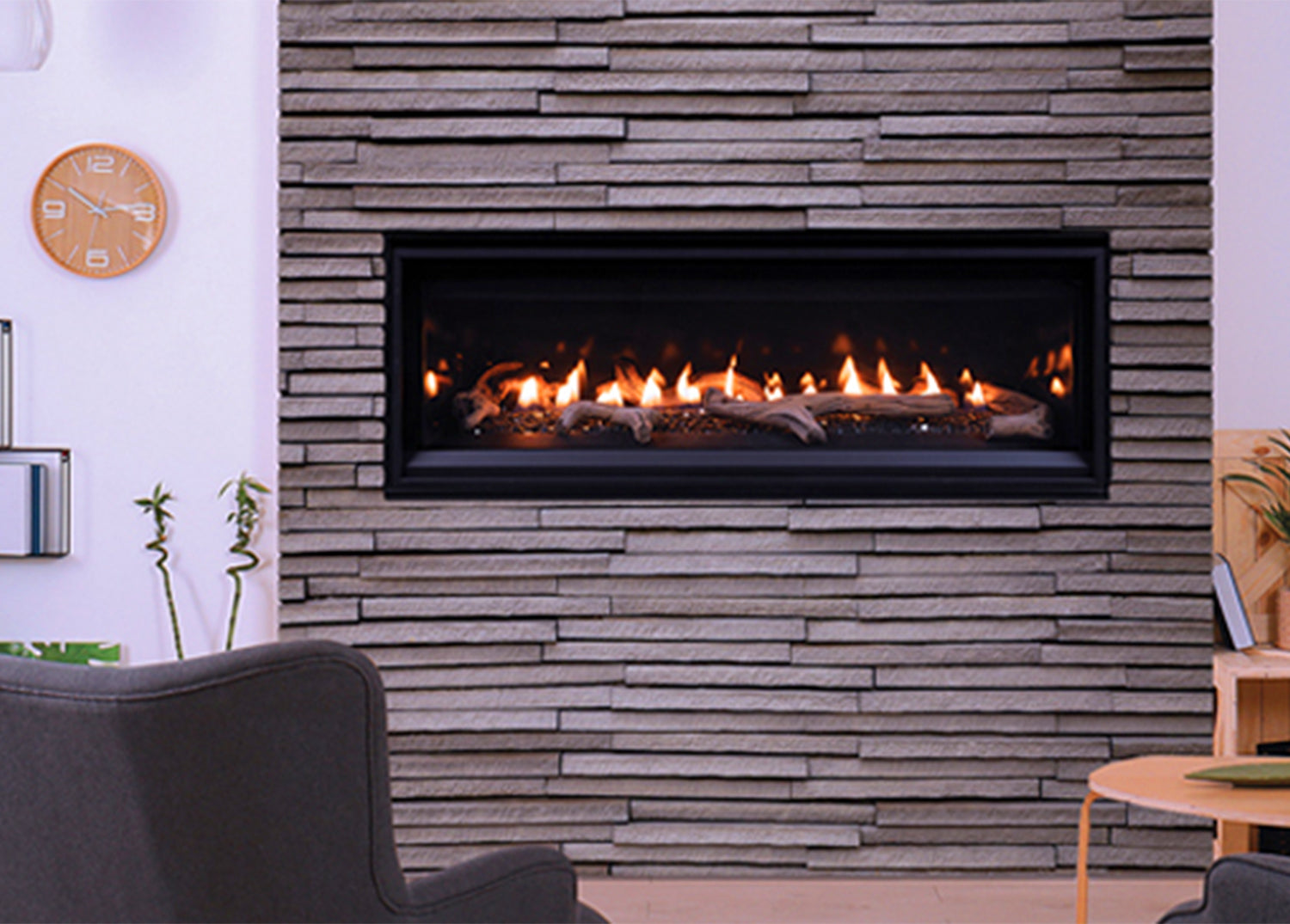The DRL2000 Series linear direct vent gas fireplace offers a clean-faced, low-profile design that is just right for contemporary and transitional spaces. Its sleek opening provides an exceptional view of the gently dancing flames rising through the beautiful reflective black glass floor media. Reflective black porcelain interior liner, heat circulating blower, remote, and wall controls are available as optional accessories, making the DRL2000 Series a smart choice.