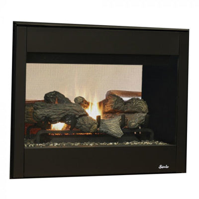 The Superior DRT35ST Direct Vent See-Through Gas Fireplaces creates a unique look for your home by displaying flames from two sides. You and your guests will be able to enjoy the view from either side as the flames generated by the burner cascade up and around the beautiful ceramic fiber-aged oak log set, offering up to 30,000 BTUs of heat output. The excellent heating efficiency also means that this heat creates increased comfort at reduced operating costs.