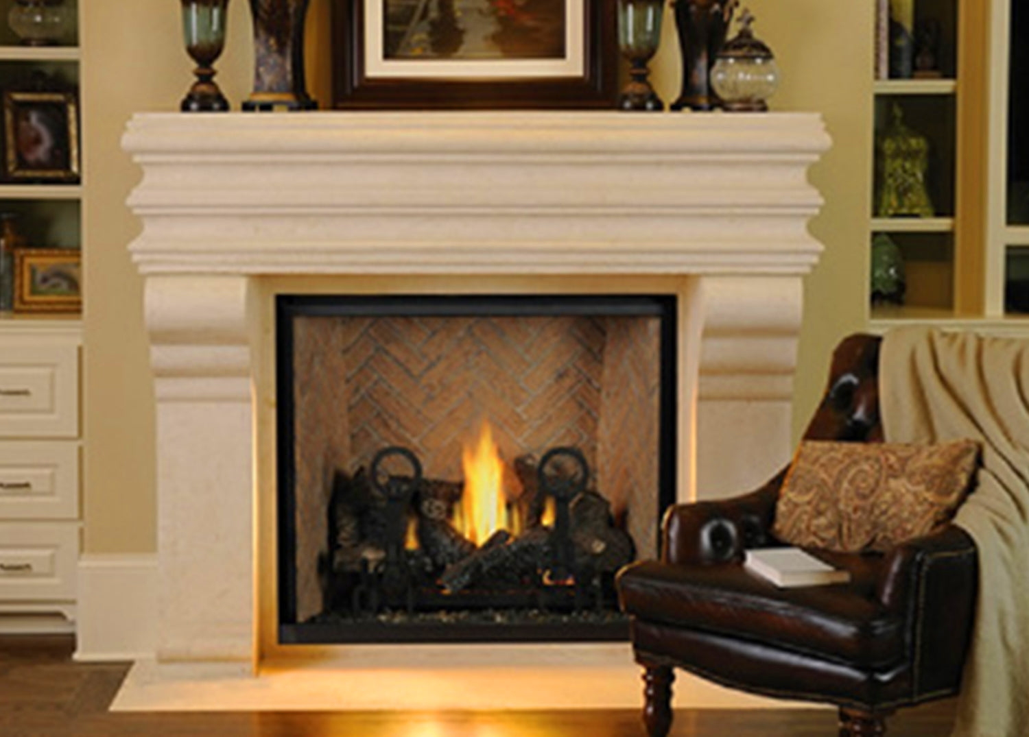 - Gas controls are conveniently hidden to the side of the fireplace opening for easy installation and finishing