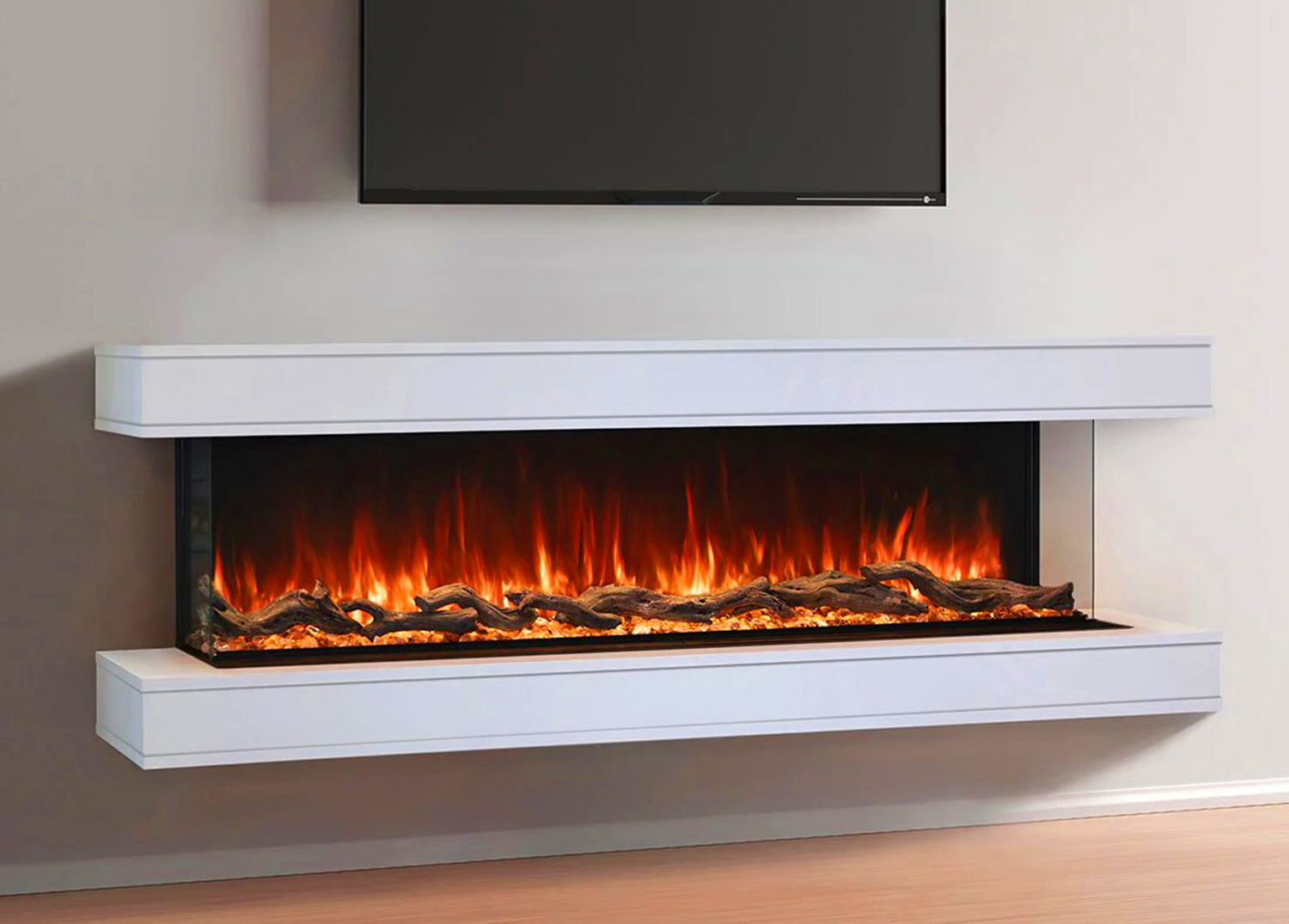 Wall-mounted design: The electric fireplace is designed to be mounted on the wall, creating a floating effect that adds a modern touch to your decor. It saves floor space and gives a clean, streamlined look.